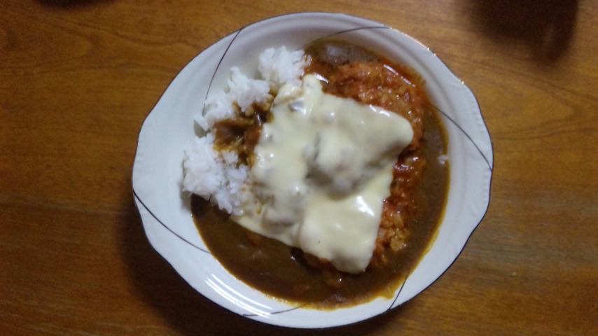 カレーを作った!!ハンバーグとチーズ入り。
